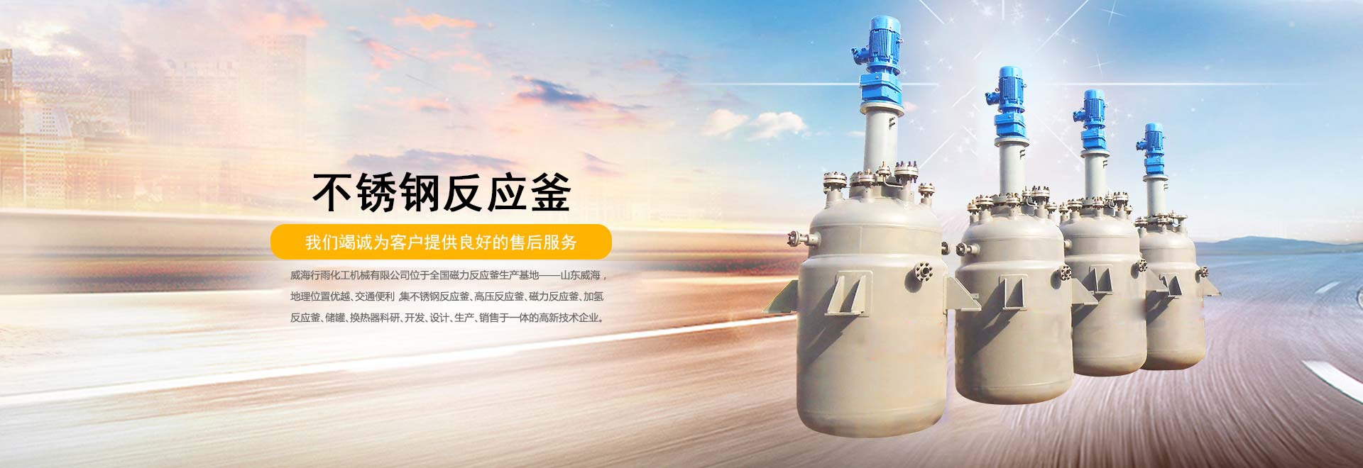 威海行雨化工機械有限公司位于全國磁力反應釜生產基地——山東威海,地理位置優越、交通便利,集不銹鋼反應釜、高壓反應釜、磁力反應釜、加氫反應釜、儲罐、換熱器科研、開發、設計、生產、銷售于一體的高新技術企業。